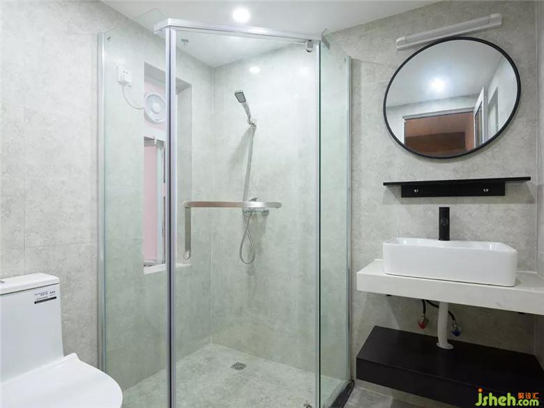 卫生间部分改造后功能区分明,淋浴区和洗漱区分开,这样的设计使卫生间干湿分离,有利于隔离细菌,更加符合健康家居的理念