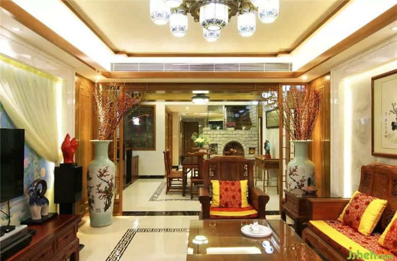 设计师首先从色调入手,整体选用了自然暖色调,调和中式大气所带来的距离感,又不失中式所蕴含的博大精深。
