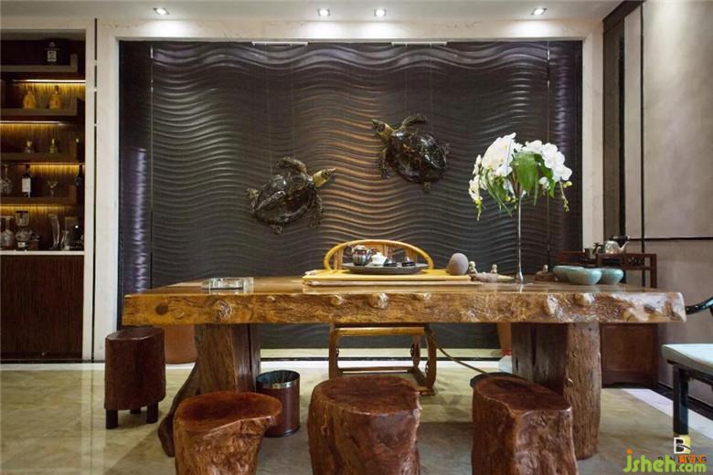 走过纹样细腻的一角,正厅中央的纹路似苍劲的书法,在轻薄的绢面上翻飞,这些“墨迹”泛着久远的意蕴,散发出摄人心魄、无法抗拒的美,一壶清茶静伫,仿佛已等了许久,而此处更像极了心的故乡。