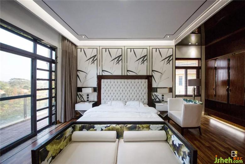 床头交错伫立的背景装饰像把折扇慢慢推开,将空间的意蕴荡漾开去,入目尽是简约、典致的家具,在简约硬朗的空间中,呈现出庄重与优雅的双重气质!