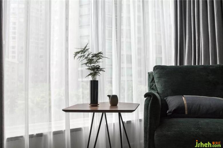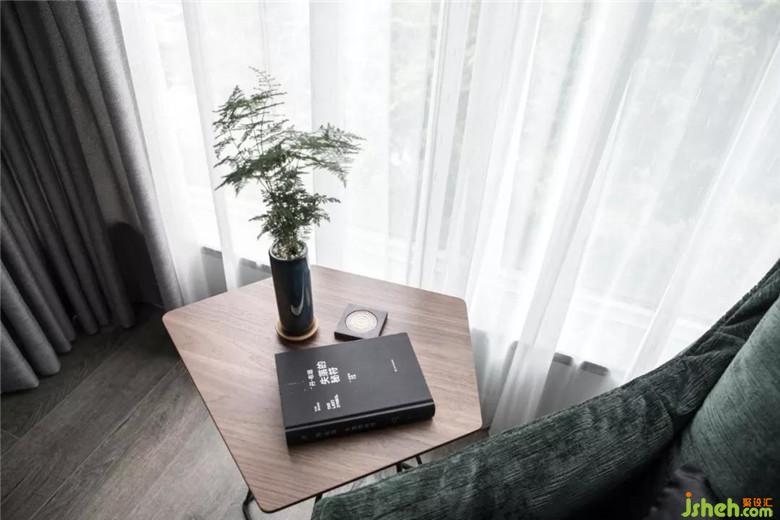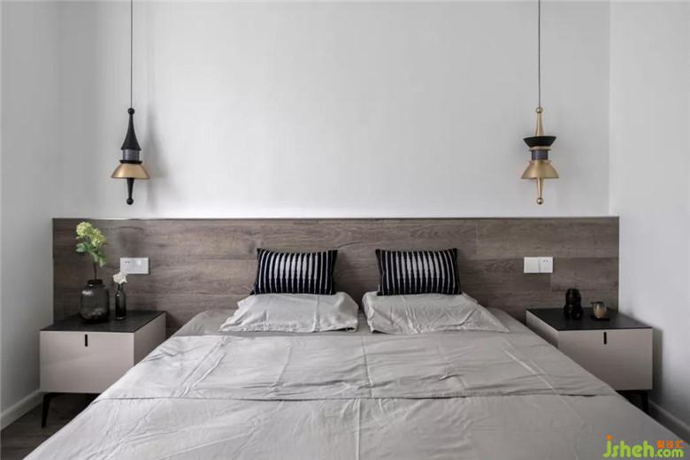 高雅自由的空间,充满了唯美的想象,灰色加墨绿色的搭配,提升空间沉稳度,黄铜色床头灯不但跟墨绿色很搭,且增添了空间的复古气息。原木色的床头背景墙一方面保留了现代风格的简洁、自然,又增添了空间的层次感和温润灵动的尺度感。