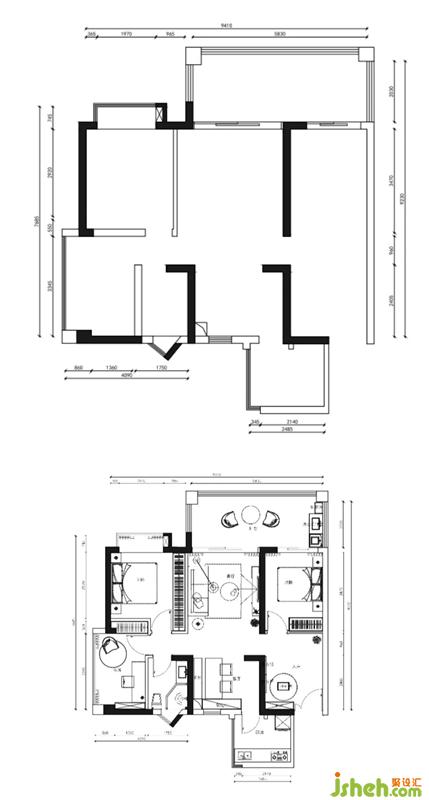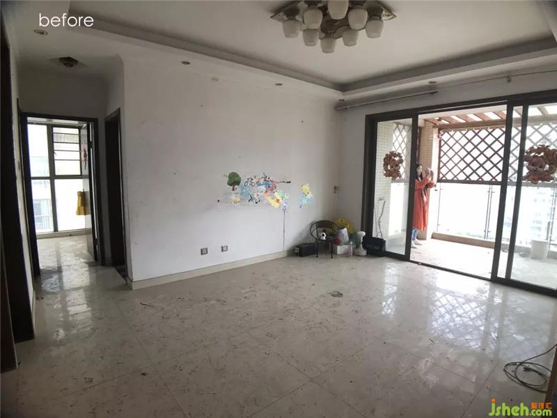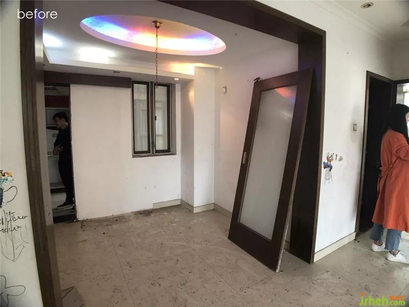 改造前,主卧和书房的空间都中规中矩,储物空间不够,把主卧墙体往客厅方向推60cm,书房墙体往主卧推60cm,这样两个房间都有了一个大衣柜,解决了收纳的问题。