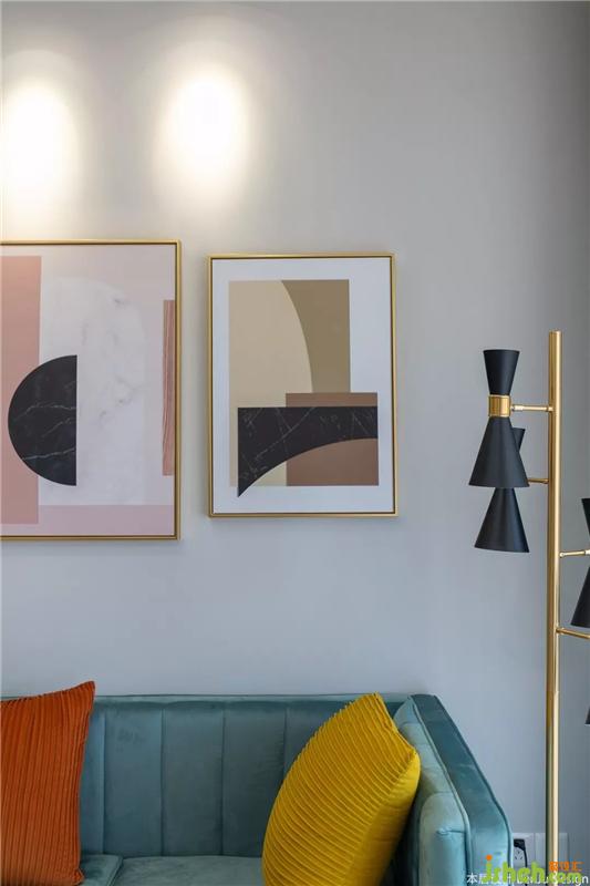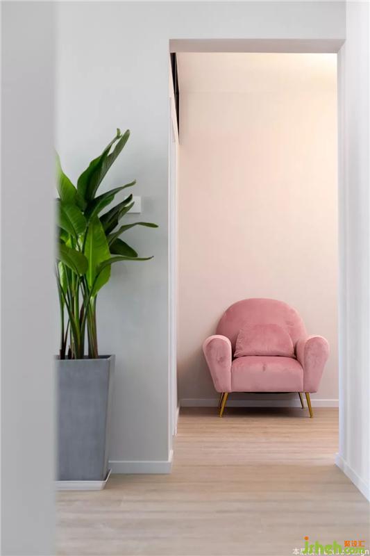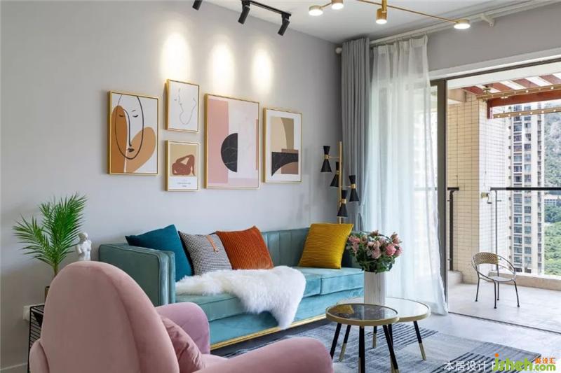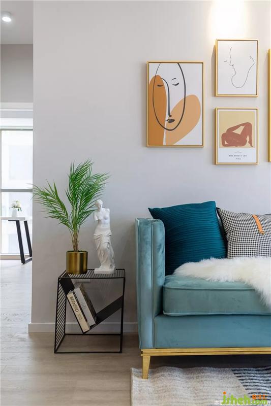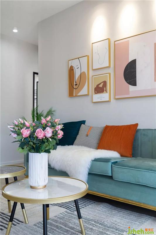 薄荷绿的三人沙发,加上色彩多样的抱枕,让客厅看起来不至于枯燥乏味。粉色的单人沙发是可以随意换位置的,放在客厅就缩在沙发上煲剧,也可以放在玄关来个对镜拍。
