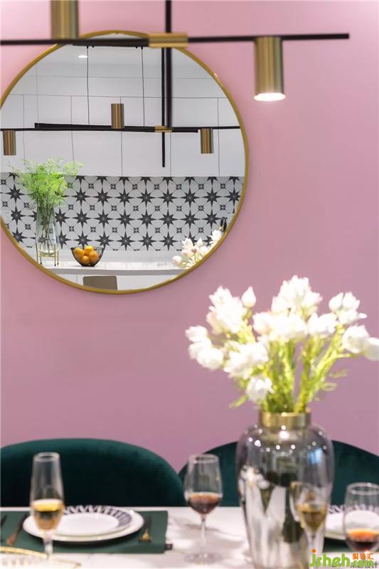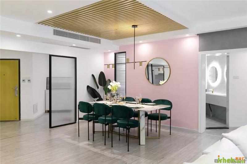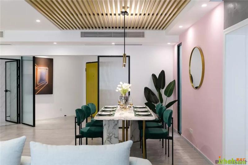 用长虹玻璃将玄关与餐厨区分离,起到隔断作用,既保证隐秘性又不会影响采光,空间感也比较轻盈。室内设计师