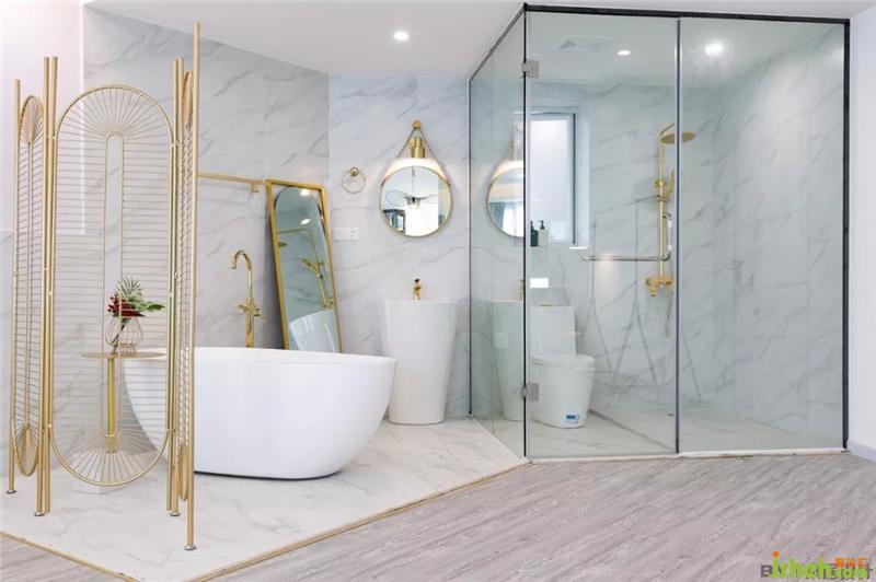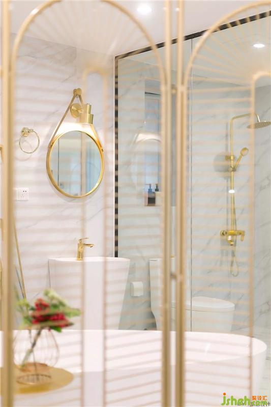 浴室在床的右侧,木地板改为地砖,用金属屏风隔开浴缸,玻璃门隔开淋浴区,防止卧室潮湿。浴缸就在浴室里,回来躺在浴缸里,享受泡澡的安逸,每一个毛孔都放松下来了。室内设计师