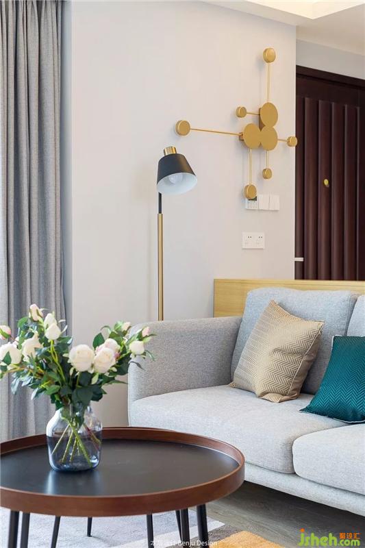 客厅没有做复杂的软装设计,采用原木+浅色系,干净淡雅。简单的沙发加落地灯,没有过多华丽的修饰,整体简单整洁。室内设计师