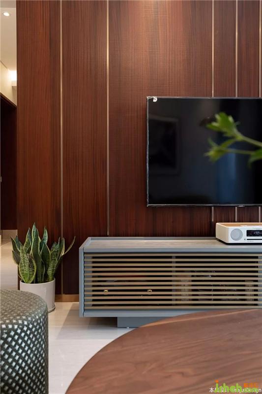 北欧表情的木栅门电视柜,白蜡木的框架,线条干脆利落,极具现代感。实木的纹理富有韵味,内部设置有抽屉和不同高度的龛柜,具有强大的收纳功能。