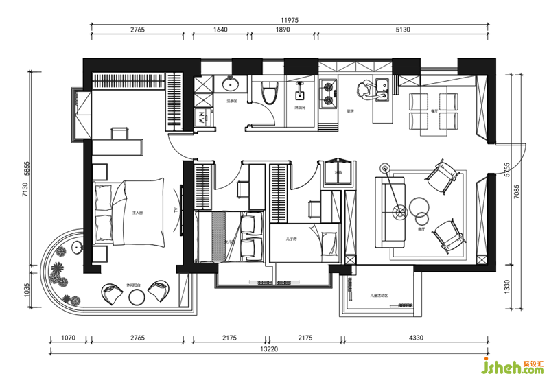 2.优化厨房餐厅空间,可分可合式厨房,增强空间交互性