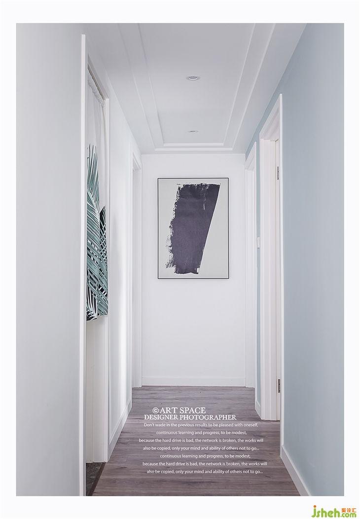 ▲中间套的硬伤就是有个长长的走廊,没有做柜子啥的有点浪费空间了。但是这样真的很简约清爽。卫生间外面装了个门帘,点缀下过道的视觉。走廊尽头的这幅画,貌似也只有我欣赏的,老公说为啥不让他画一笔就好呢~