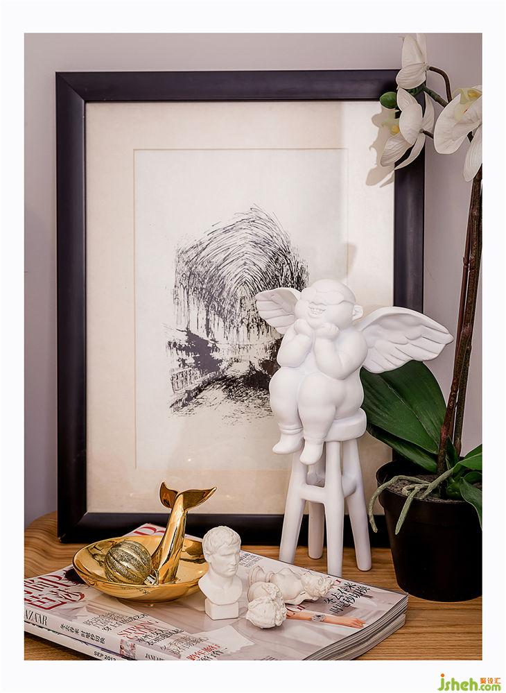 ▲床头柜是下面抽屉上面敞开的款式,每天要用的放在敞开部分,不至于桌面太乱。床头的挂饰被我老公称之为拖把,唯一支持我的只有我亲妈以及设计师大大~