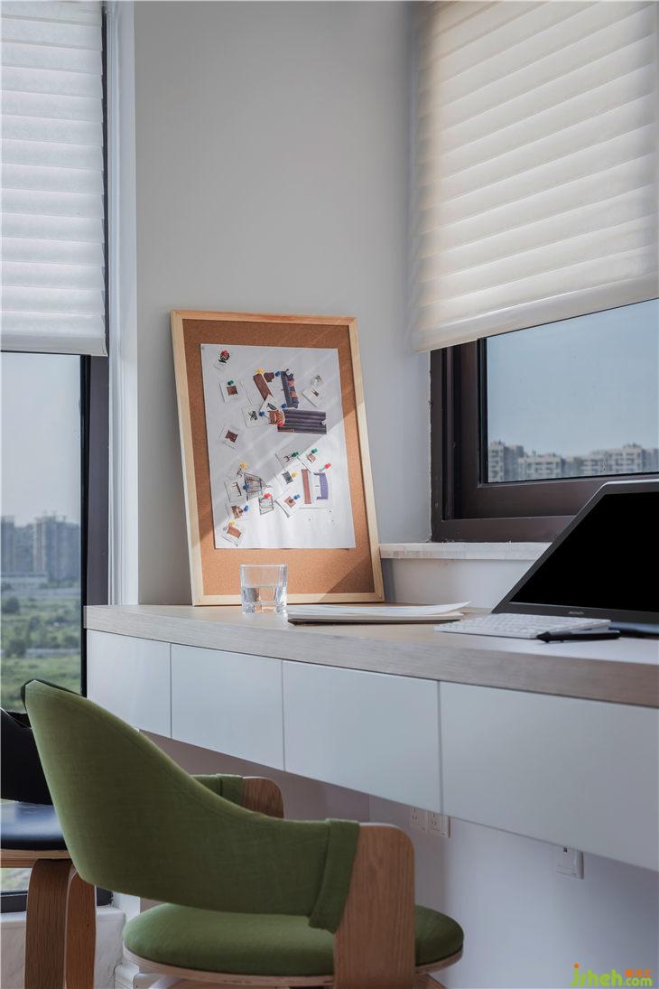 考虑到户主工作的特殊性,窗帘采用了风琴帘,阳光通过风琴帘照射进来光线更加柔和,创造了良好的工作氛围。