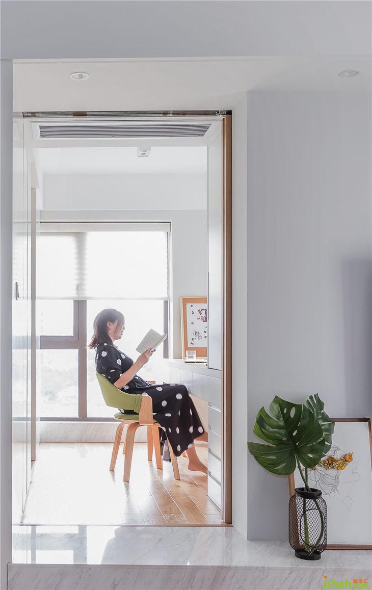 下午时光,阳光倾满整个书房,一缕柔和的光线洒在柔美的脸上,轻风吹动着发丝,优美至极!看到这一幕我也幸福的笑了,我想这就是我想要的设计与生活吧!始于昼夜出行,囤于书房如你。