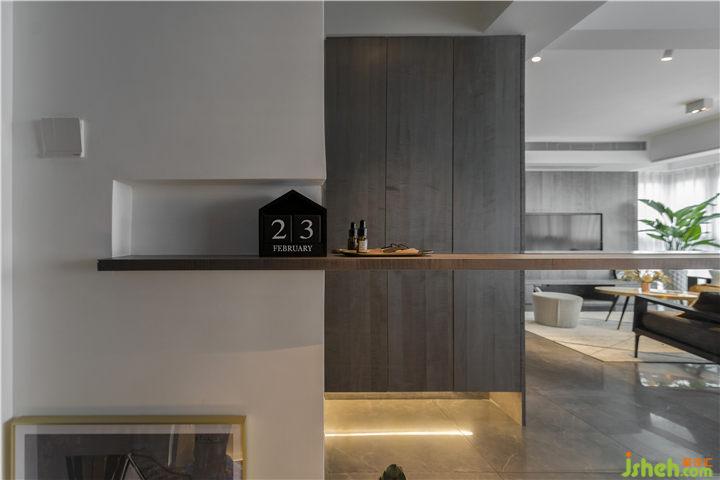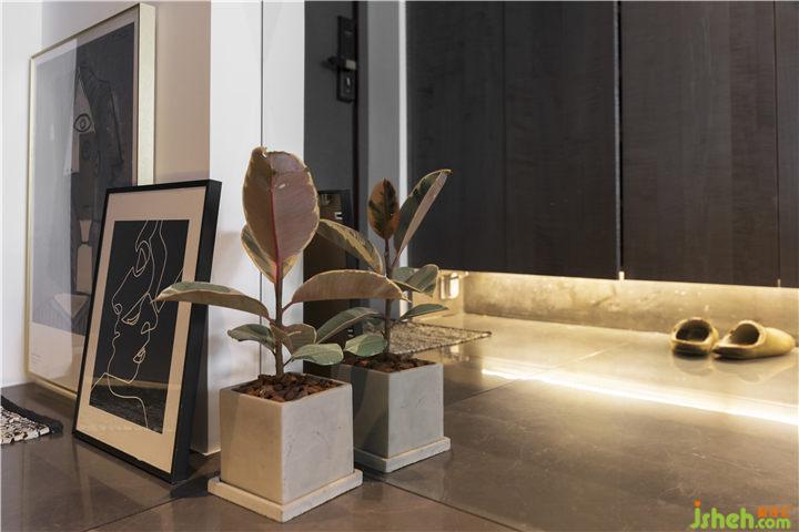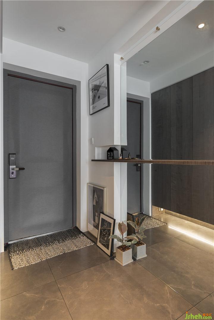 从视觉上扩大了玄关的视觉享受,镜面反射的整排鞋柜满足了一家四口人的所有鞋物储藏!