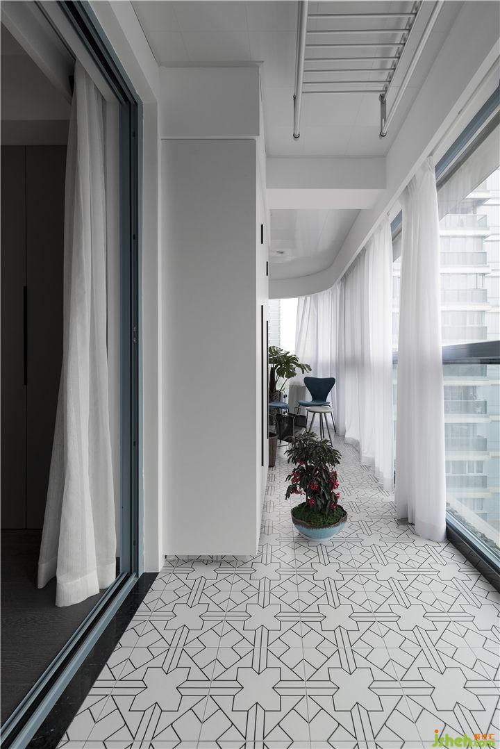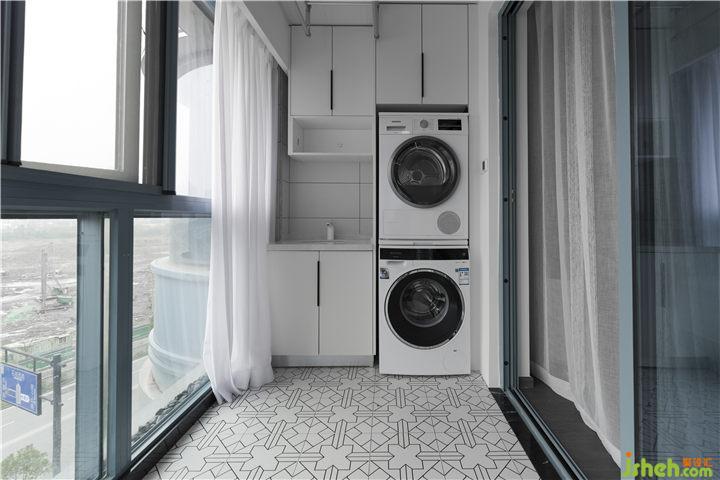 同时把洗衣机和烘干机放在了阳台,满足屋主的日常浣洗需求。