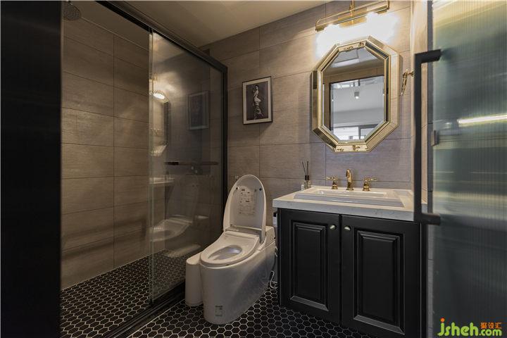 卫生间瓷砖采用了长方形和六边形的黑砖,让原本千变一律的卫生间也变得特别时尚。卫生间是特别可以看出家庭品质的地方,所以每一件建材的选择都是经过精挑细选的。