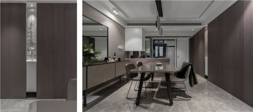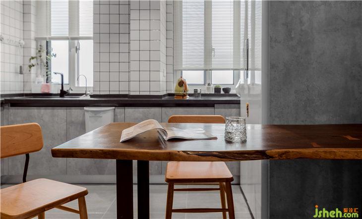实木餐桌与厨房形成半开放式,温暖了这个小小的空间,同时让生活既平凡普通有充满情趣!