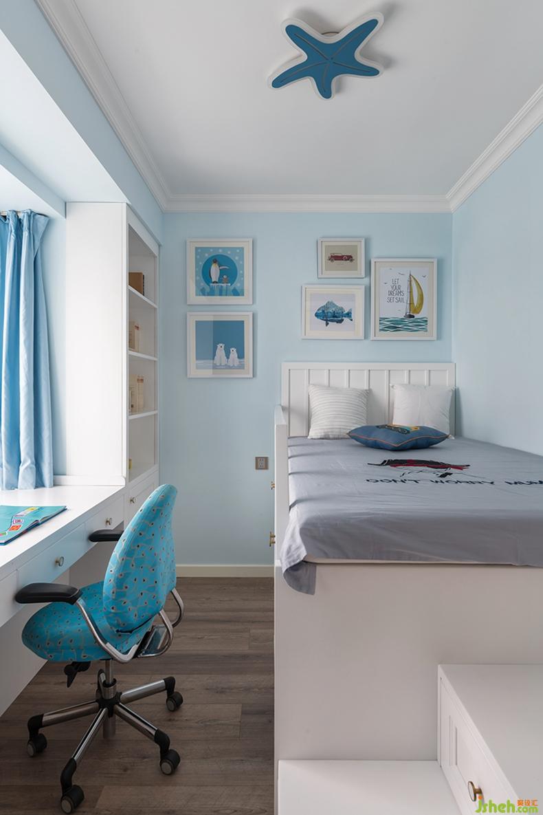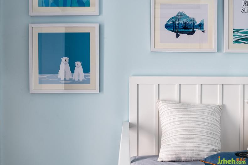 长辈房以清亮又明快的浅灰蓝色为主色系,自然地渐变美感,犹如挂画中的调色以最柔和的方式晕染开来,让卧室纯净又安静。