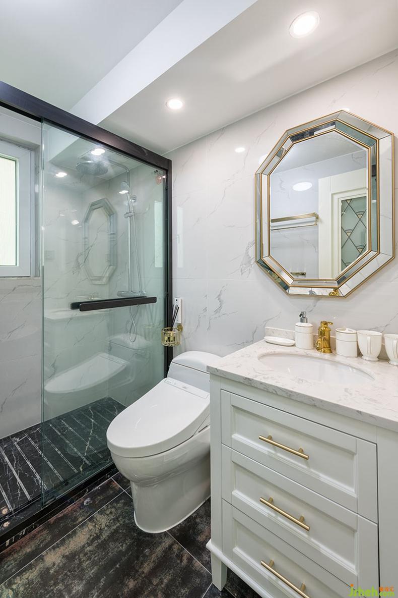卫生间在白色主调中加入金色的小装饰,为呆板的空间增添了一点儿俏皮。深圳设计公司