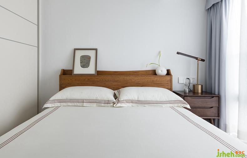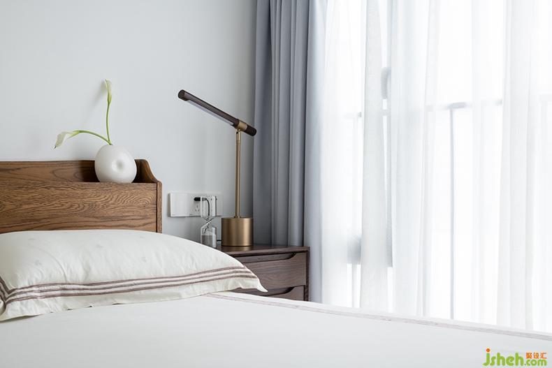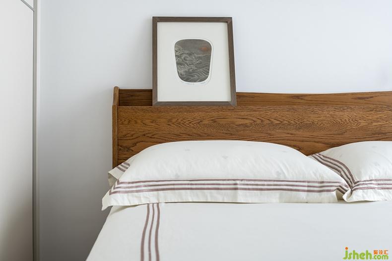 长辈房陈设简洁,素色床品,纯粹木质元素的家具,还有装饰画与花器,融合在空间里,宁静畅然,点点滴滴保留生活的原汁原味。