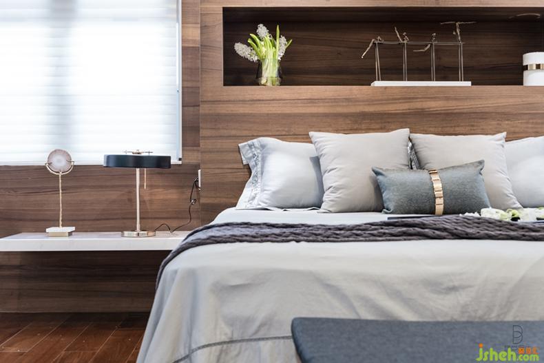 陶瓷、原木、香烛......自然元素与现代化的巧妙融合,让整个卧室充满了精致的格调,一个宜人的角落令人彻底放松身心、感受自然。