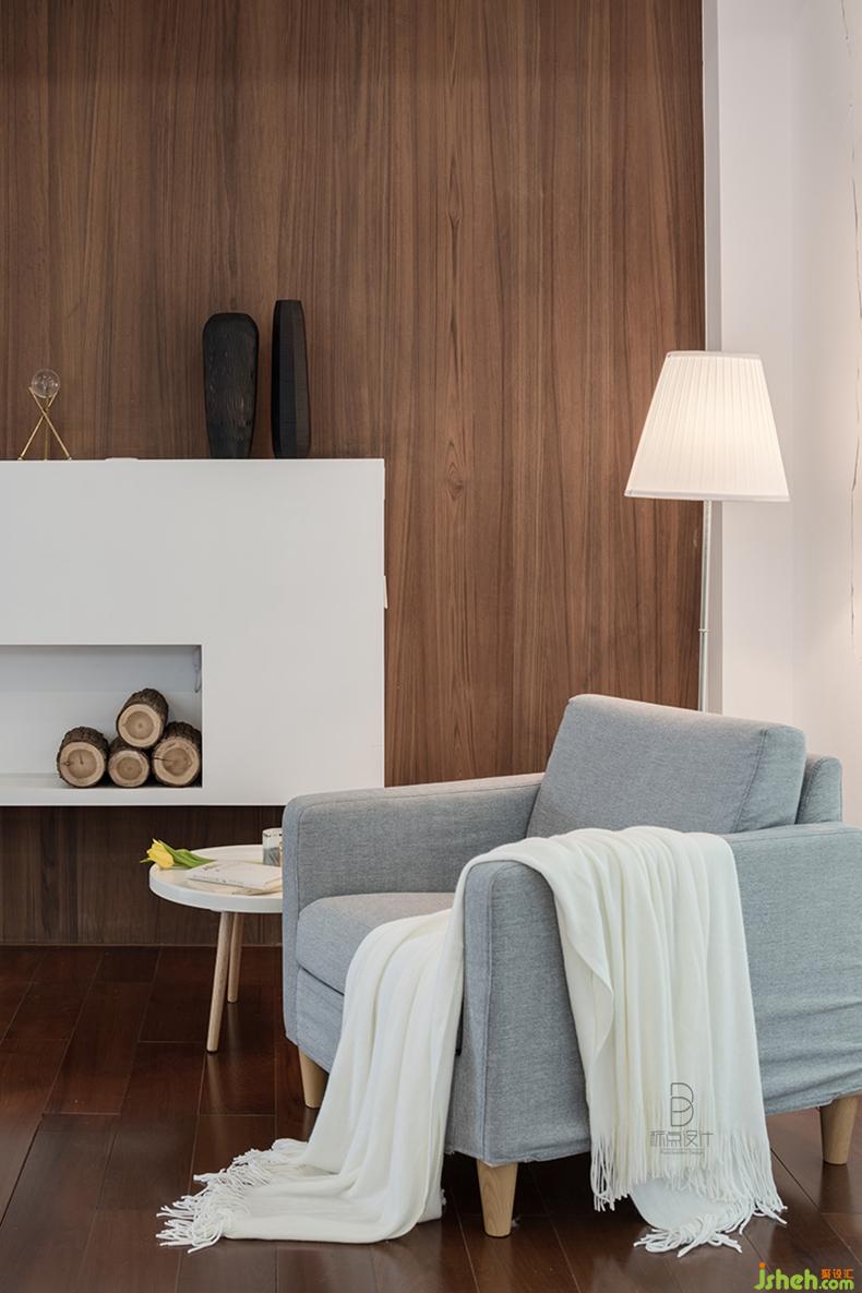 在宽敞的主卧里,木质材料从地板覆盖到背景墙,烟灰色床品、单人沙发椅相辅相成,整个居室好似画卷般意境悠远,宁静浓重。别墅装修设计
