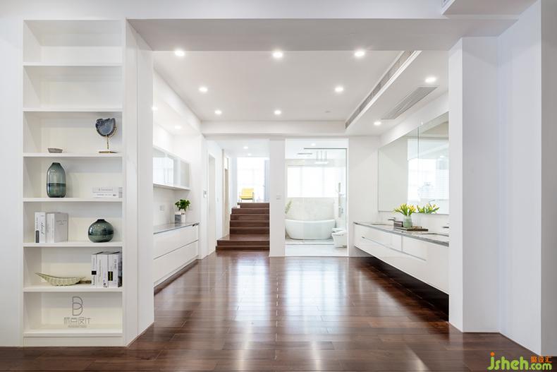 不带一丝杂质的亮白色洗浴家具作为背景,选用带有高对比度纹理的大理石材质装饰填充,素雅的色泽明亮通透,简练与利落的视感,令整个空间简美而大方。别墅装修设计