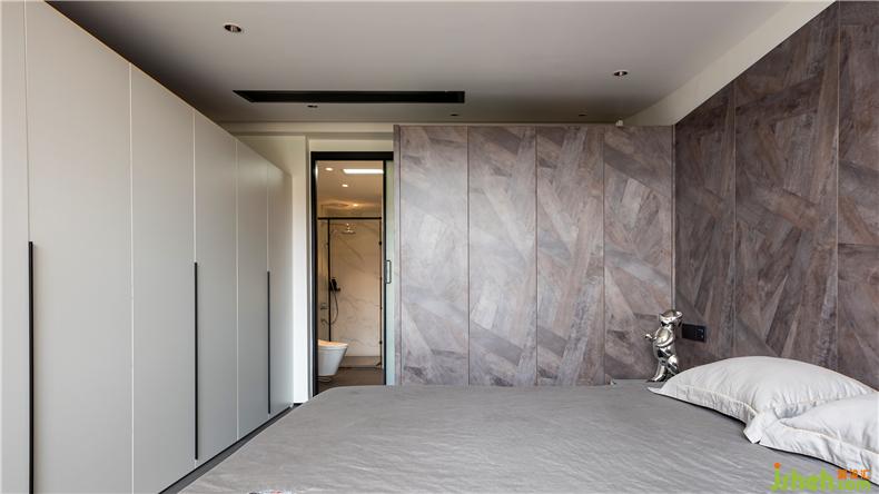无床头设计、收纳式柜体、以木色为主的色彩及木纹纹理,极大地减少了空间的簇拥感,室内设计师使得视野通透,气息自然,只需简单搭配,足以衬托儒雅格调