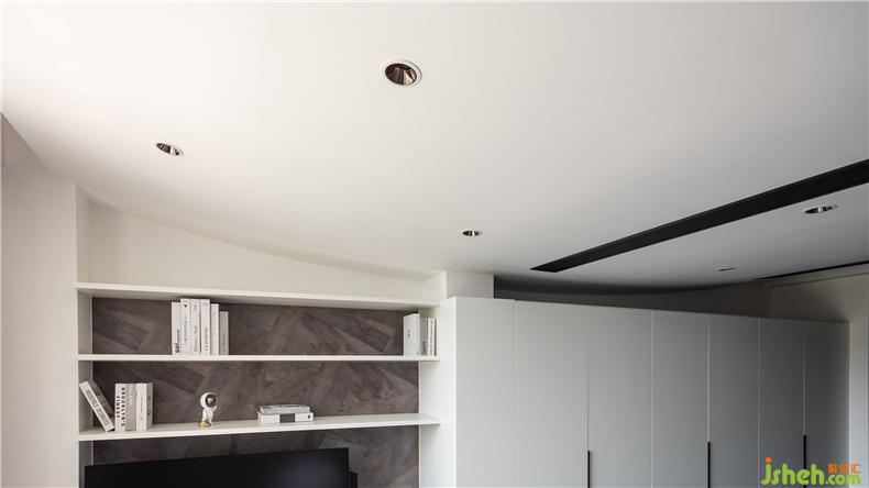 主卧沿用了弧形设计以弥补结构上的不合理,却也避免了单调;光与影滑过,室内设计师或慵懒或温润,顺着曲线落入,别具一格。
