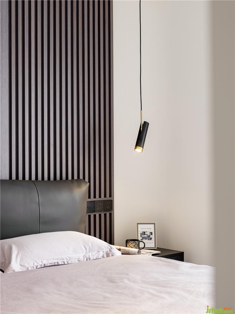 床边的衣帽柜上方设计了暖色系照明