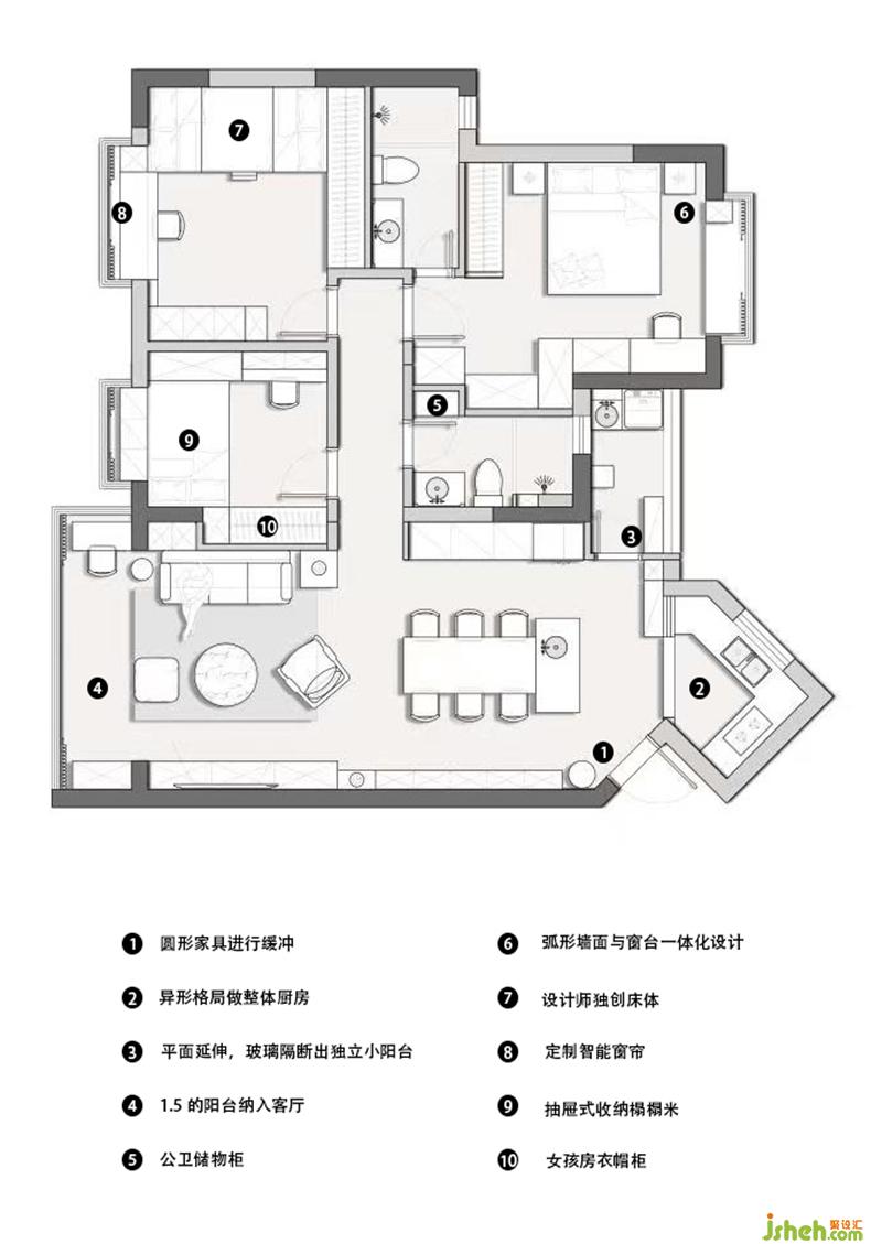 设计师更是直接创作了一套全新床体打破了传统常规的上下床结构
