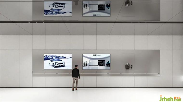 汽车是Gallery空间的核心与灵魂,它也是技术与艺术的融合,展厅设计对速度和精致的追求。泊赫设计将蔚来品牌DNA提炼为纯粹极简的设计语言,巨大的视觉张力吸引探寻的脚步,自主探索。