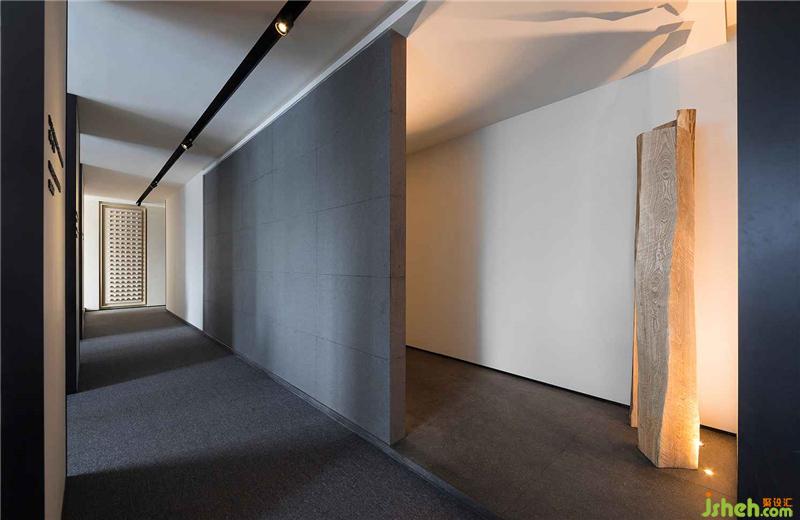 在走道入口尽头的一隅,原木艺术品成为了这个小空间的亮点,办公室设计这种自然材质既富有设计感又为空间增加活力。白色的墙面平衡了空间的色彩,使空间更加灵动。办公室设计