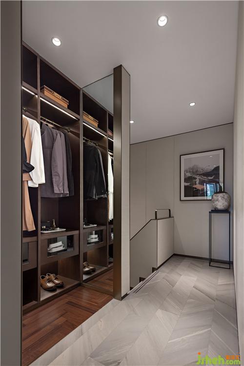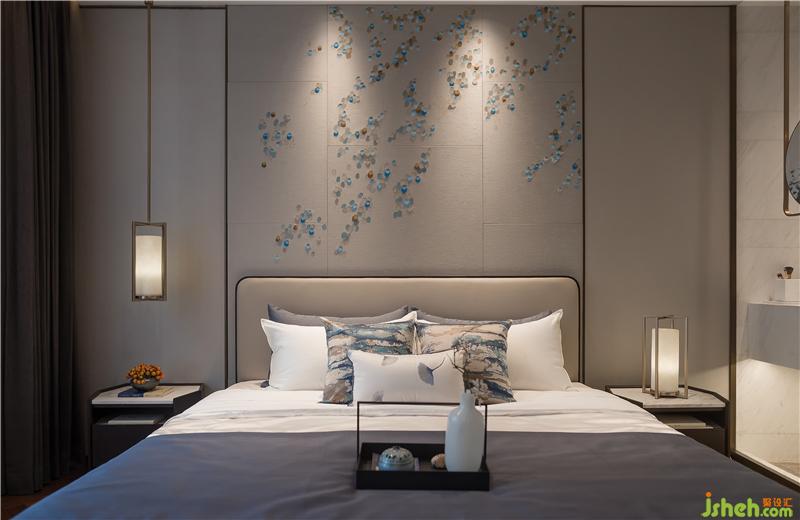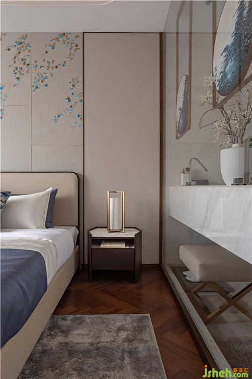 着重于设计背后所表达的居住体验,以传统的湘绣与手绘交织出湖色的空灵。安静朴雅的色彩搭配,简洁时尚的金属线条,贴合居者对生活的需求、对美学的向往,赋予品位生活细腻的优雅。样板房设计