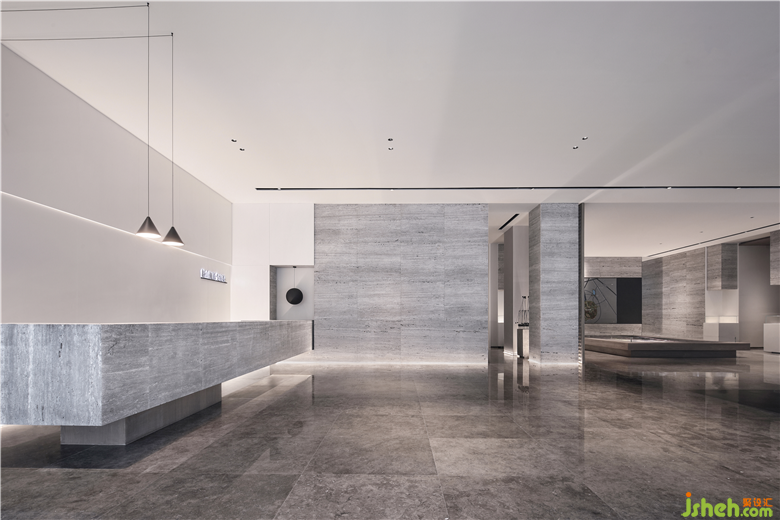 灯光似流水般洗过墙面,轻盈的线条与天然的银灰洞石,在空间形成流动空灵的光影,还原江南深巷里的园林旧貌。
