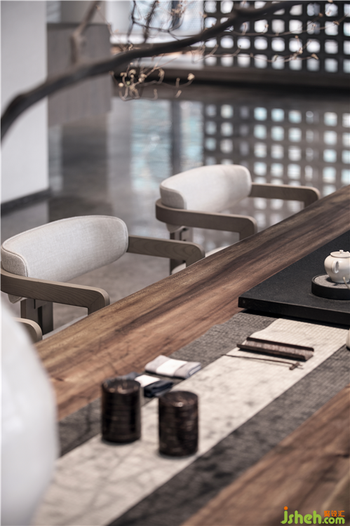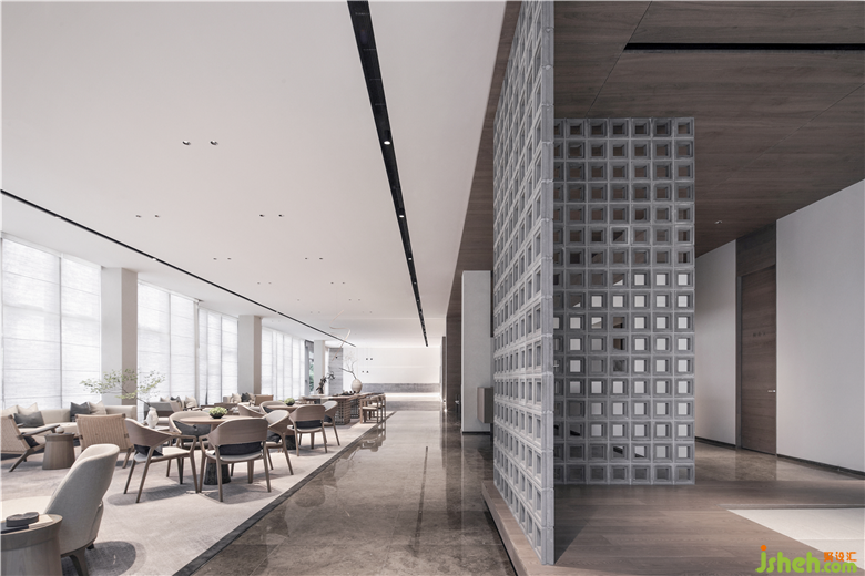 下沉式结构会所设计,一隅自成天地,光火明暗之间,似隔非隔的“墙”,隐约、朦胧间透着几缕东方的诗意。