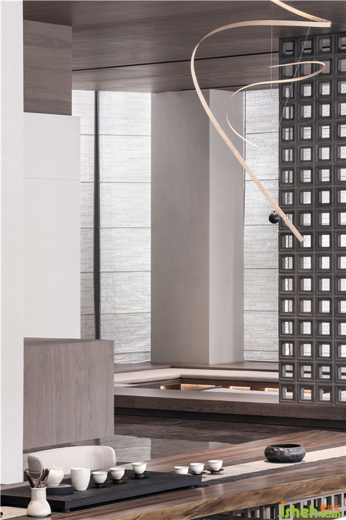A reading area is done by sunken structure. Between the light and shade and through the "pane wall", it reveals a few wisps of Oriental poetry faintly and hazily.