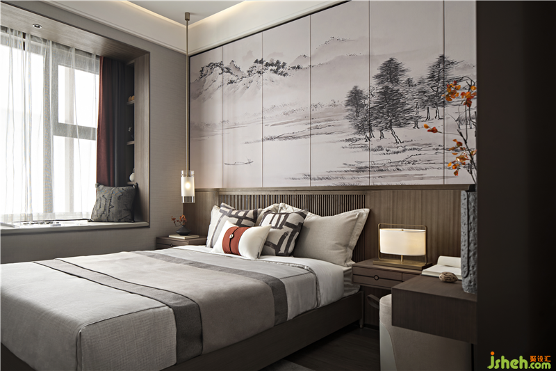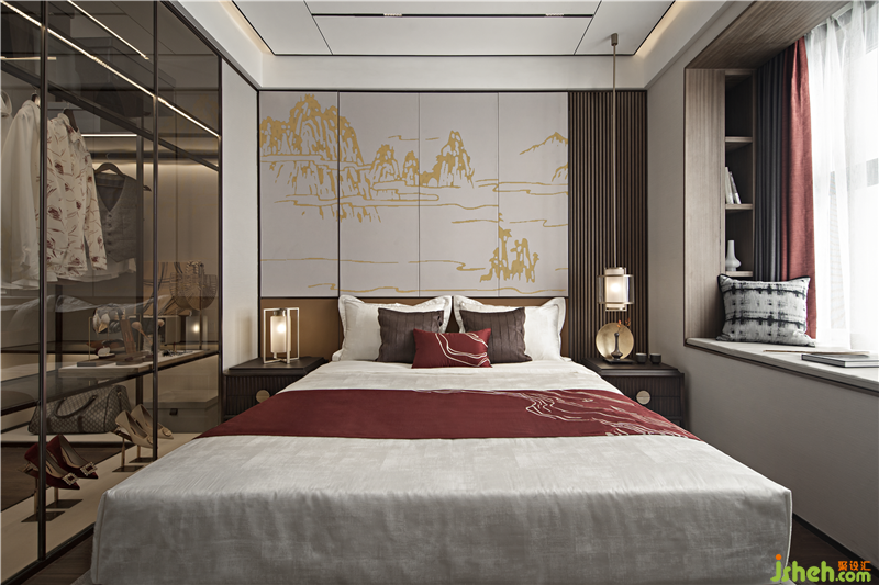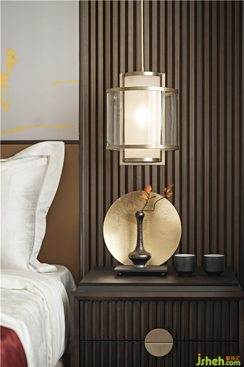 The golden silk painting of mountains and rivers becomes the visual focus here. The texture of gold is contrasted with the warmth and moistness of wood grain, and in the light, which presents the elegance ,telling the taste of life.