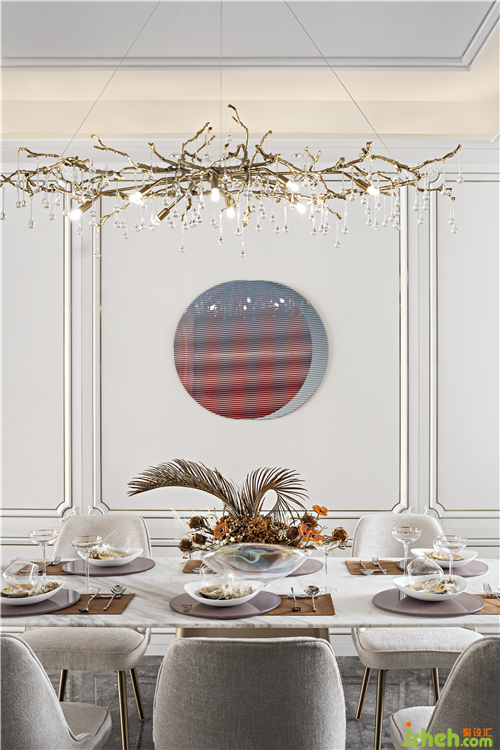 别出心裁的金属艺术吊灯,与浪漫的法式花艺惺惺对语,仿佛置身于巴黎香榭丽舍下的树荫,追逐内心的自由向往。