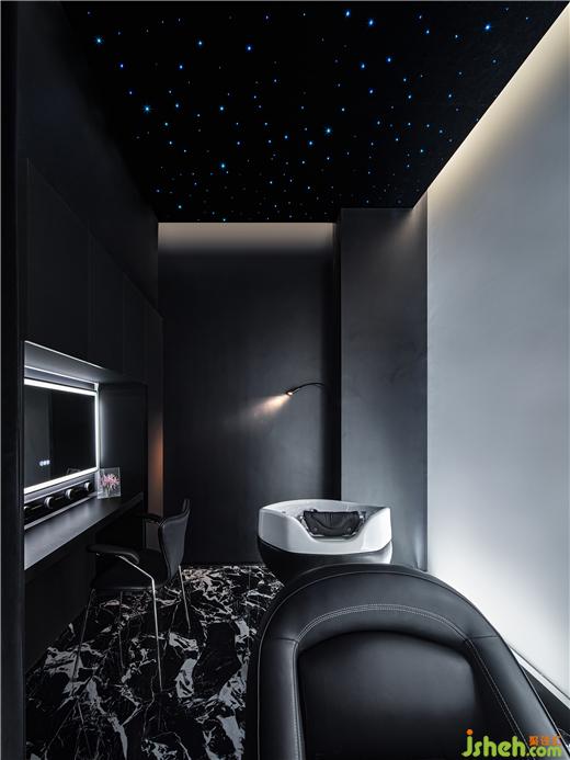 洗头区提供头部护理及化妆间服务,结合星空顶营造静谧舒适的氛围。