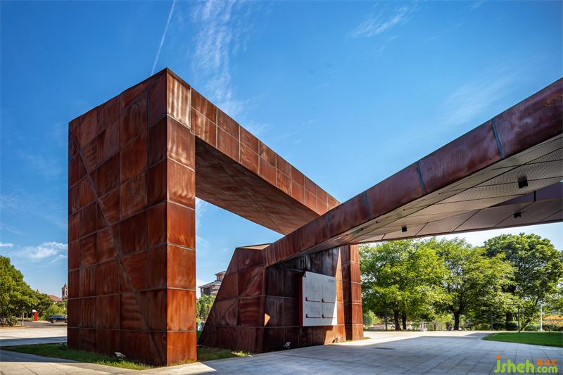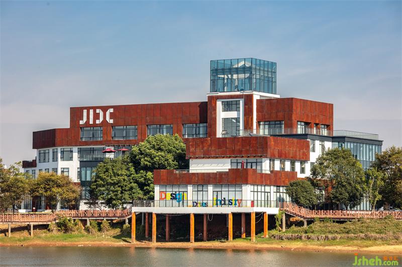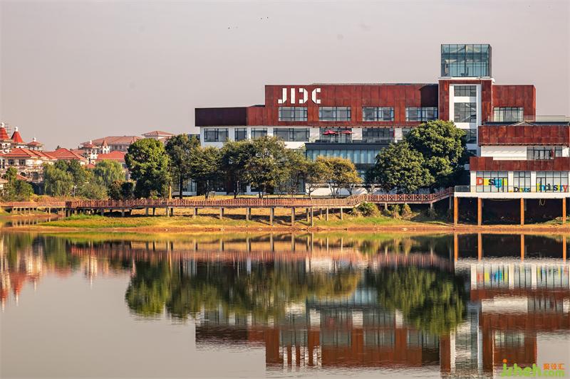 中心三面围绕着龙津湖畔,野开阔,三面环水,风景优美,犹如镶嵌在龙津湖面的一颗明珠。龙津湖湖面占地面积435000㎡,是江西市区内最大的水系公园,也是繁华都市难得的一片心灵栖息地,生活的闲适与惬意是这里的真实写照。湖边绿树成荫,中心绿树肆意生长,尽享阳光的恩泽。栈道碧湖旁,有一栋散发着硬朗旧工业气息的四层建筑坐落在波光潋滟的龙津湖畔,散发着创新与设计的气息,那就是江西红品创新设计中心(JIDC)。