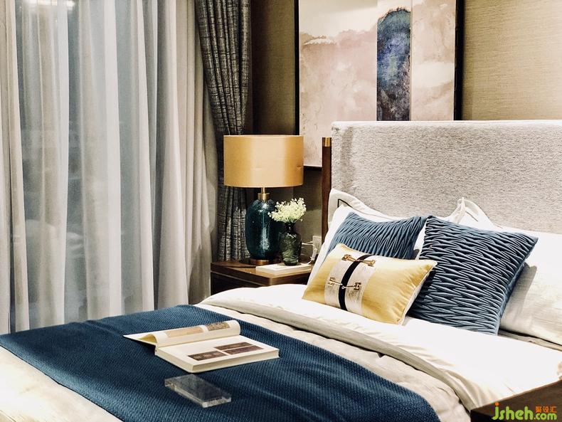 主人对生活的情致最能体现在每一个卧室中。斑驳的水面挂画、深沉的蓝色浪花纹路,布艺以及深灰的色彩搭配,都在告诉我们,居住者思想深沉而向往静谧。