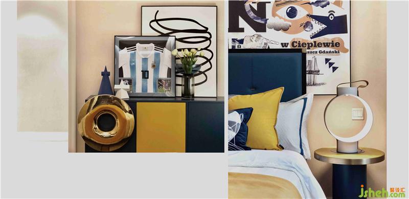 走进房间,迎面而来年轻,自由的感觉,黄色和蓝色的搭配太美妙了,我们给孩子一个放松自由的空间,让他在这片天地中去自我发觉成长。