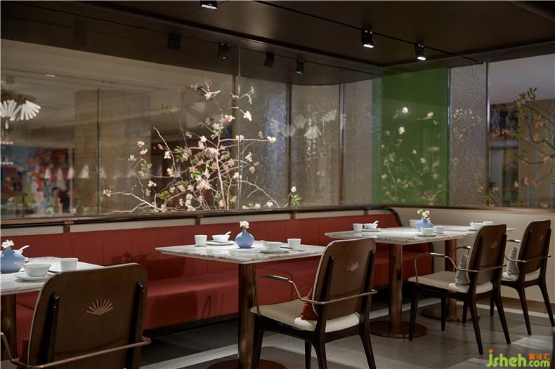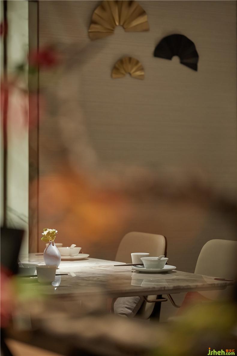 与之相呼应的是墙面的搭配的扇面造型饰品和湖南著名景观的照片墙,餐厅设计以及误入桃花源的中国水墨画无一不诠释着创作的主线:为食客提供一个优雅就餐的”世外桃源”。