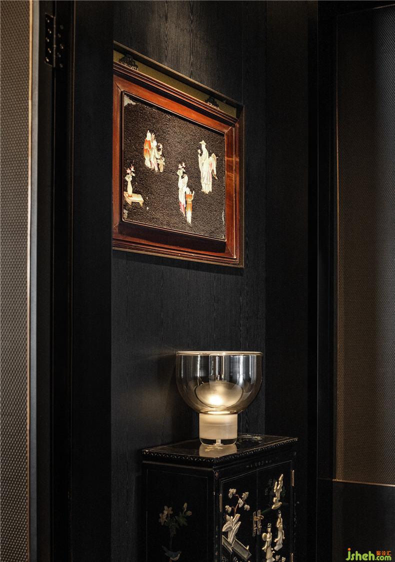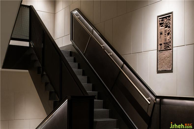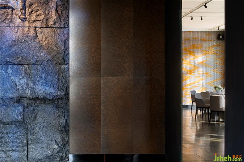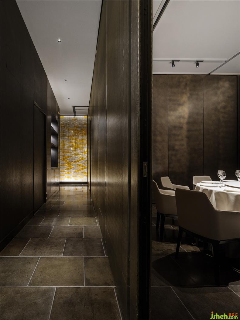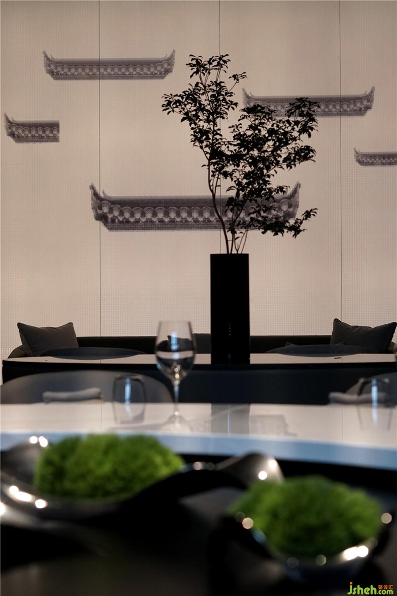 马赛克玻璃墙与徽派马头墙建筑特色喷绘相辅相承,传统元素结合现代材料,餐厅设计柔和、舒适的光线以及光影情趣予以人水墨诗意的场景想象。