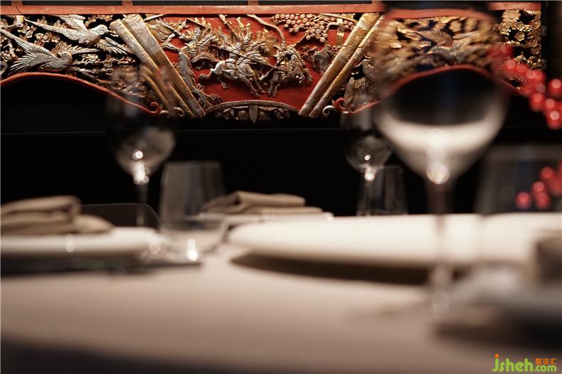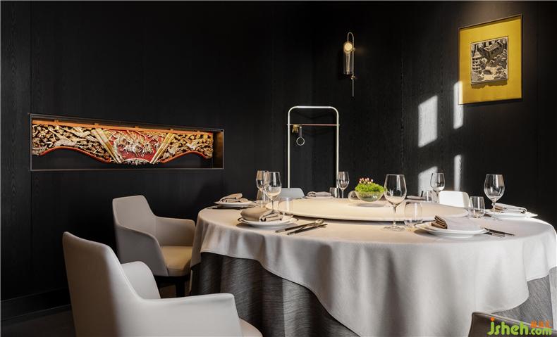 硬朗的家具线条与丰富的立体感,克制而又精细地勾勒出当代奢尚优雅,餐厅设计在陈设徽雕主题装饰之余,现代艺术活力亦得以体现——出自设计大师扎哈·哈迪德之手的水晶吊灯、意大利Artemide与梅赛德斯合作限量灯具以及马斯登光立方系列吊灯凸显空间对艺术的探索延伸,令“食”不止步于味蕾。