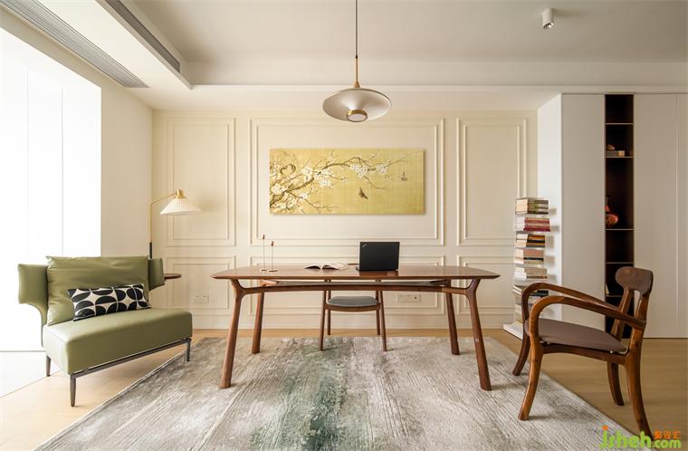 “我家客厅不想要沙发茶几,我平时用不上。室内设计师一张大桌子对于我来说更加实用,我平时用它阅读、喝茶、做手工、写书法。”——屋主。