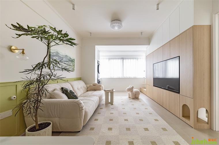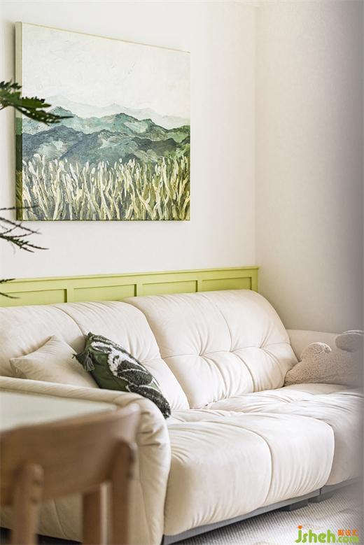 米色的沙发很适合客厅,它既柔和又雅致。绿色护墙板是一个很有趣的设计元素,装修公司它为空间引入了清新的气息。挂在墙上的风景画起到了点睛之笔的作用,这是我们亲自为业主画的一副装饰画,它可以成为整个客厅的焦点。