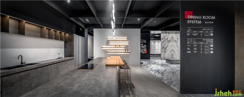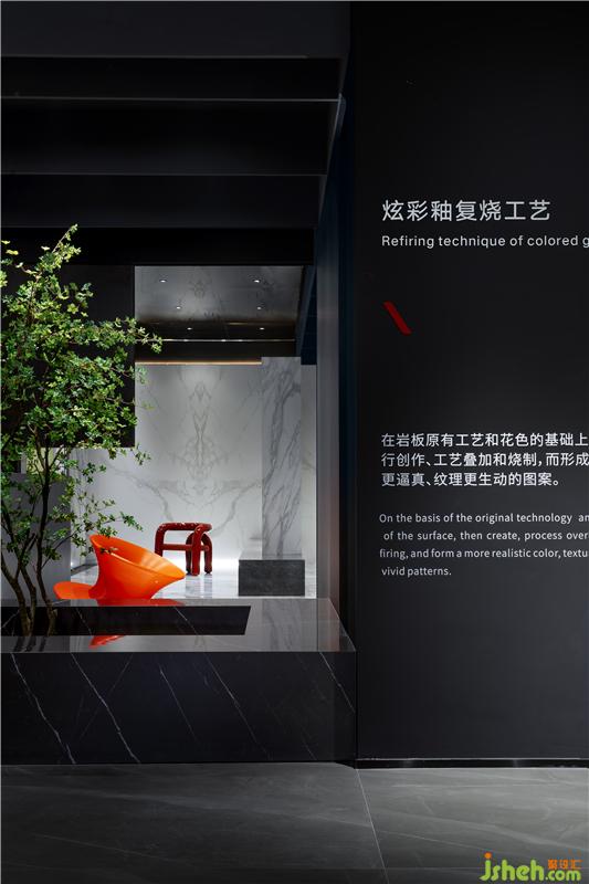 新物种、新材料,势必也带来新运用。岩板除了上墙、铺地之外,超薄尺寸可作为饰面板,创造出无限可能。设计团队首创式地引入意大利板材标准,对岩板产品的规格、面材、尺寸、适用场景等参数进行系统化梳理,并形成行之有效的可视性标识体系,让客户多维度地了解产品,填补了国内展厅设计在标识版块上的