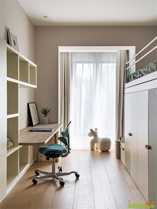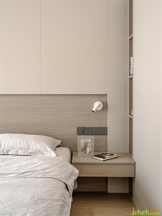 长辈房整体配色以浅咖色为主,温馨又治愈