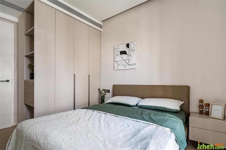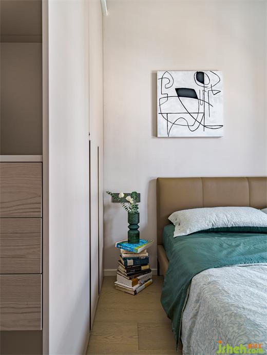进门处增加衣柜侧边开放格,海境界家装设计既满足储物也能让人进入房间时不觉拥挤压抑